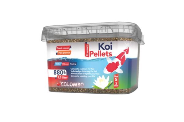 Koi Pellets is de beste complete hoogwaardige voeding voor koi: • Voortreffelijke groei; door een uitgebalanceerde verhouding van eiwitten en vetten. • Uitstekende gezondheid; door gestabiliseerde vitamine C en Beta-glucanen (uit gist). • Sublieme kleuring; spirulina en astaxanthine zorgen voor schitterende kleuring van uw Koi. • Optimale waterkwaliteit; de prebiotics (inuline) bevorderen de vertering en darmflora waardoor er minder afval en vervuiling is.