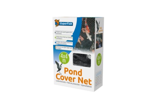 Een afdeknet voorkomt dat bladeren of ander vuil in de vijver waait en het beschermt tevens uw vissen tegen reigers en katten. Inclusief grondpennen.
