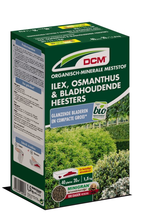 DCM meststof Ilex, osmanthus & bladhoudende heesters 1,5kg.