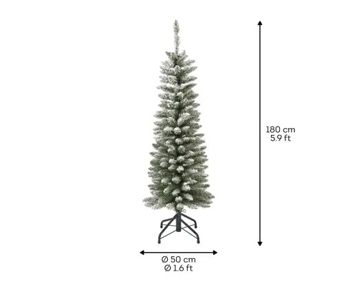 Pencil Pine Snowy smal 210xø60cm wit/sneeuw kunstkerstboom