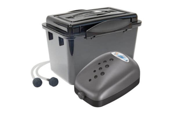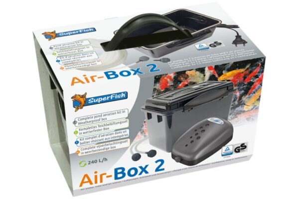 Complete beluchtingssets in een handige box, beschermt tegen regen- en spatwater. • Zorgt voor verse zuurstof in het vijverwater. • Houdt uw vijver gezond in de zomer en ijsvrij in de winter. • Compleet met luchtslang 2 luchtstenen. • Extra reserve membraan meegeleverd.